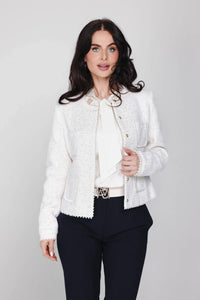 Pearl Perfection with sequins! De Nova Blazer is één van onze parels uit de collectie. Het jasje is ontworpen in een rijke kwaliteit stof zonder en voorzien van een chique parelbies. Het jasje valt soepel en draagt comfortabel. Een tijdloos key piece met een luxueuze uitstraling
