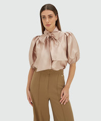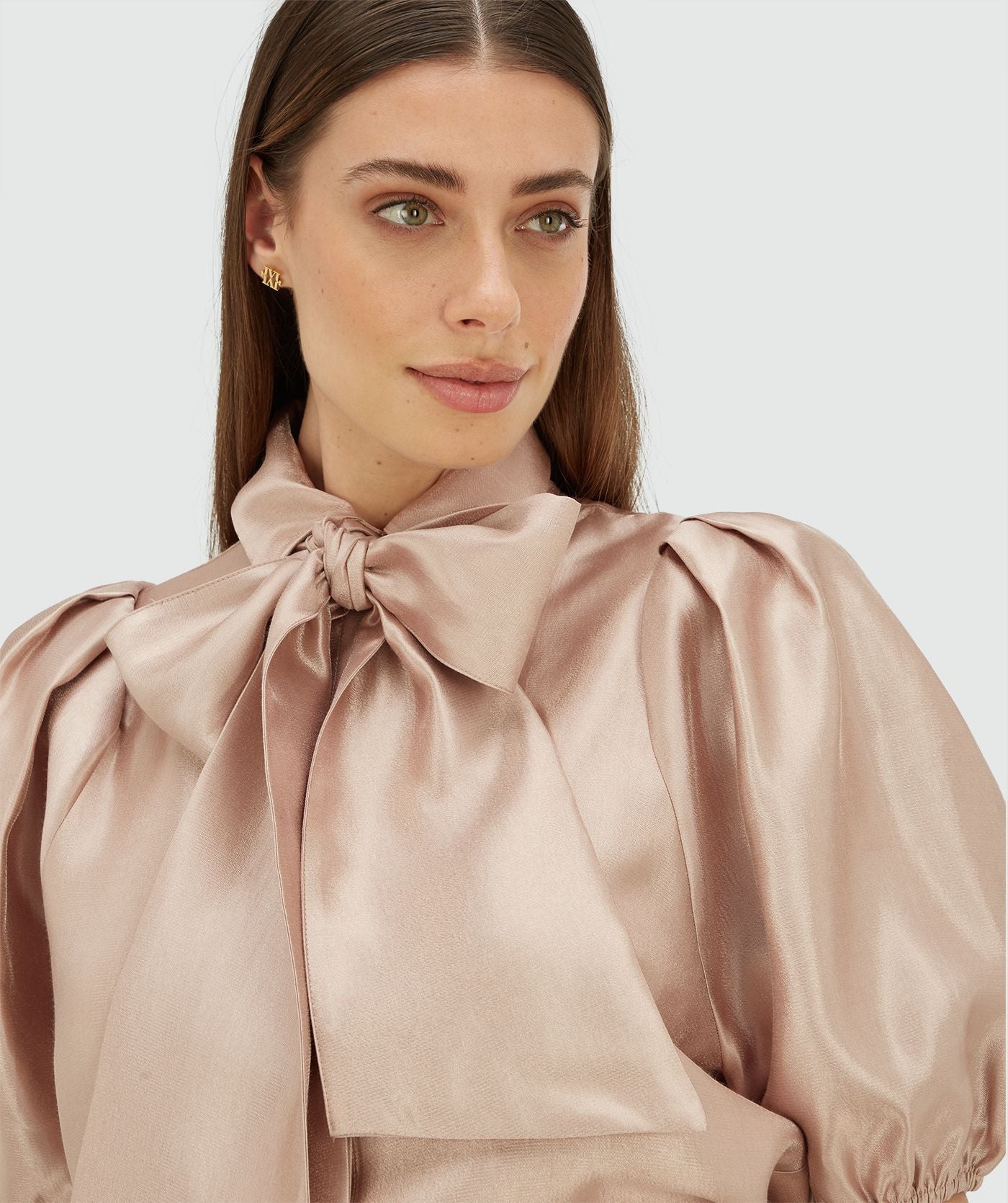 De JOSH V Sylviana dames blouse in de kleur Dusty Pink is een elegante blouse met een subtiele shimmer finish die perfect is voor speciale gelegenheden. De vrouwelijke ballonmouwen en afneembare sjaal maken deze blouse veelzijdig en stijlvol.