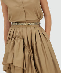 De JOSH V Tarrant dames rok in de kleur Light Khaki is een elegante maxi rok met speelse ruffles die perfect is voor een stijlvolle zomerlook. Gemaakt van duurzaam katoen via het Better Cotton Initiative (BCI™), gerecycled polyester en stretch voor optimaal draagcomfort.