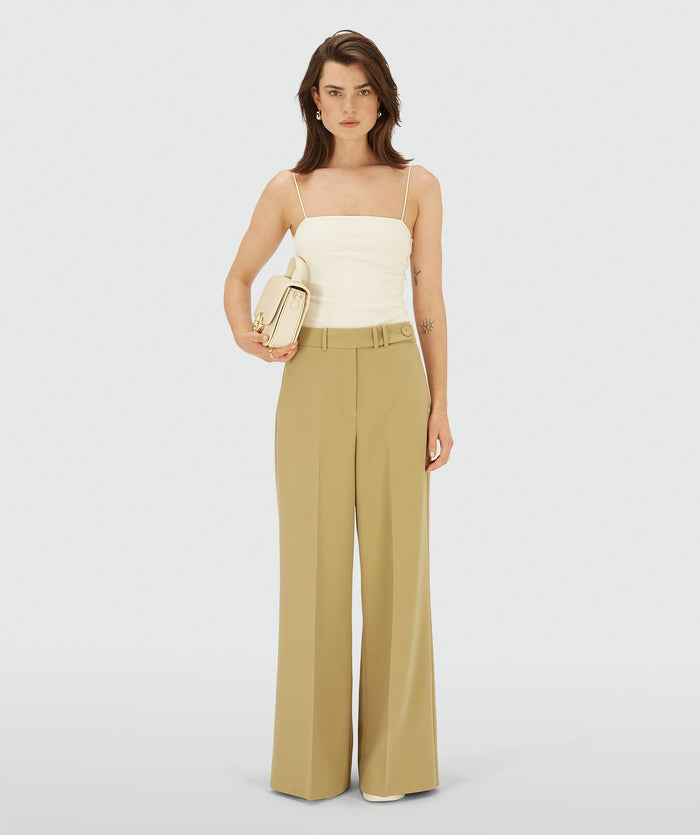 EMMA two-tone mid rise wide leg pantalon - khaki light camel