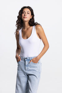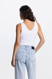 Het River singlet in wit is een soepel vallend jersey model met ronde hals, die ook als V-hals gedragen kan worden. Een veelzijdig en stijlvol basic item dat op twee manieren te dragen is en perfect combineert met iedere outfit.