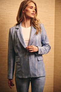 De Blazer Tezza Lano van Helena Hart is onze musthave blazer: lang, vrouwelijk en tijdloos stijlvol. De lange mouwen zijn voorzien van sierlijke zilveren knopen waarmee je ze open of gesloten kunt dragen – een speels detail dat de blazer net even anders maakt. De blazer sluit met één knoop voor een strakke, elegante lijn.