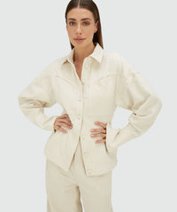 De JOSH V Micah dames blouse in de kleur Ecru is een elegante denim blouse met een uniek ontwerp. Het oversized bovenstuk gecombineerd met een aangesloten taille zorgt voor een flatterend silhouet dat zowel stoer als verfijnd is.