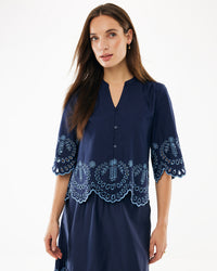 De poplin embroidery blouse van Mexx is een tijdloos item met verfijnde details. De subtiele borduursels geven de blouse een vrouwelijke en luxe uitstraling, terwijl de poplin stof zorgt voor een frisse, nette look.