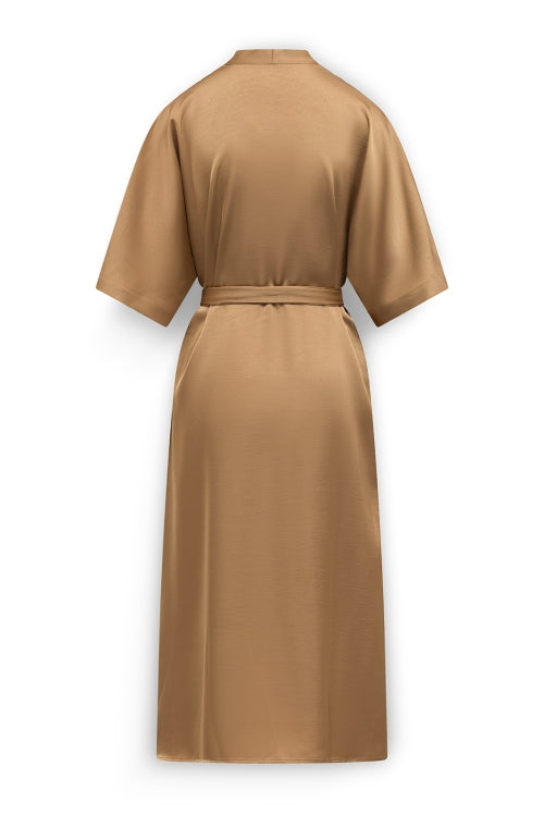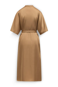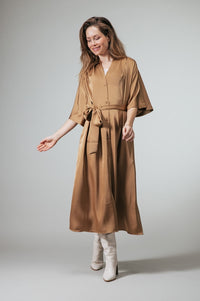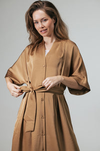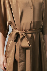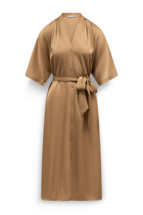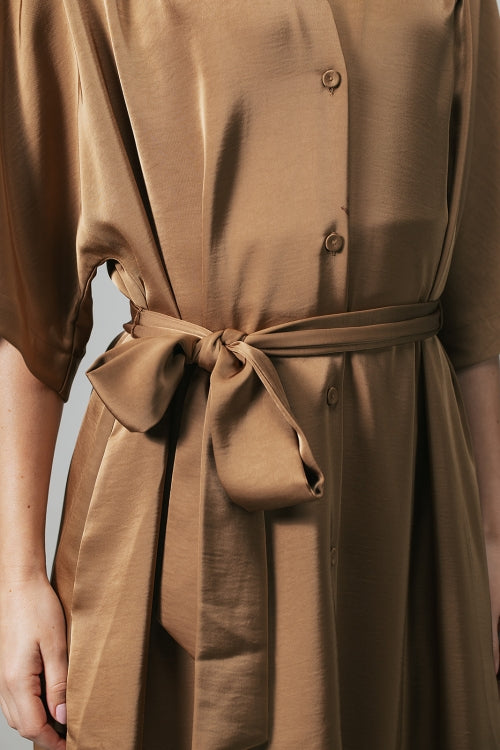 Simone Satijnen doorknoopjurk met strikceintuur
